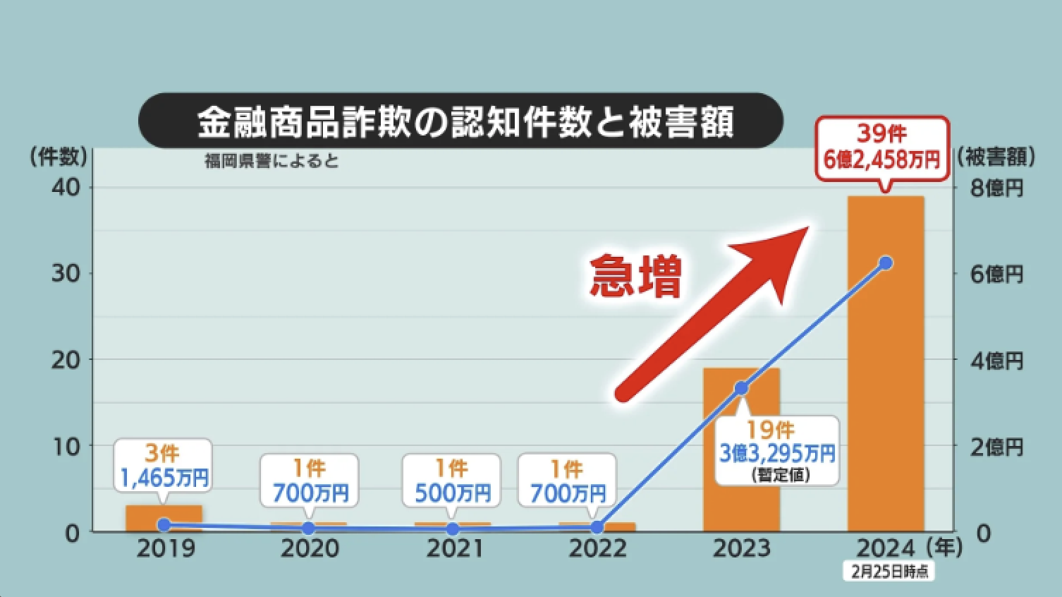 (出典:「6000万円稼ぎましょう」の謳い文句も…被害増加傾向の“金融商品詐欺”その実態を被害者が語る|RKB毎日放送