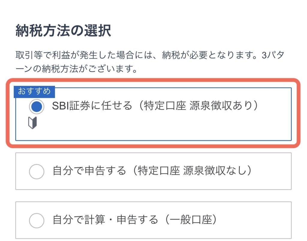 サラリーマンも個人事業主も、「特定口座(源泉徴収あり)」を選択で、とりあえず間違いなかよ。