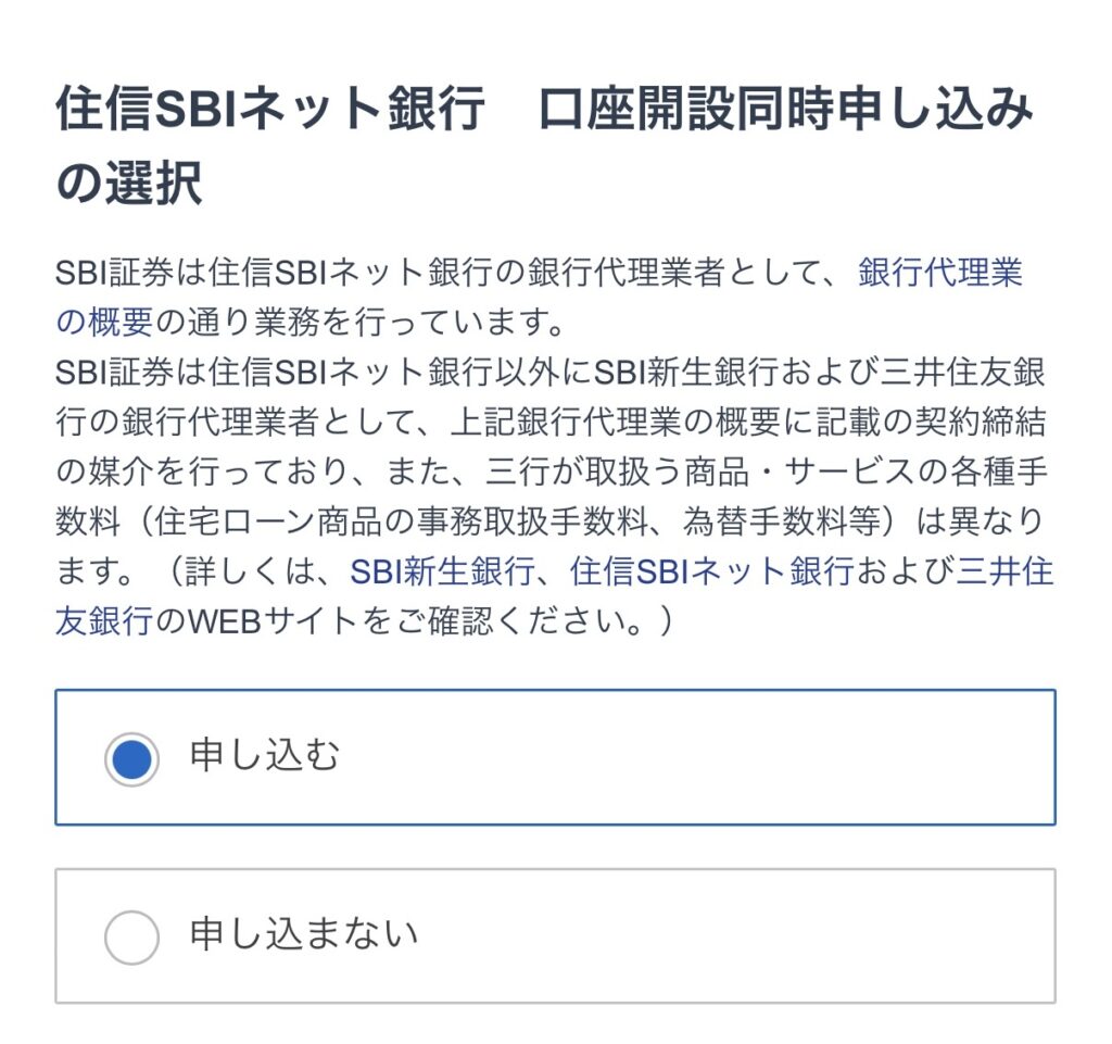 d NEOBANK(住信SBIネット銀行)口座開設同時申し込みの選択