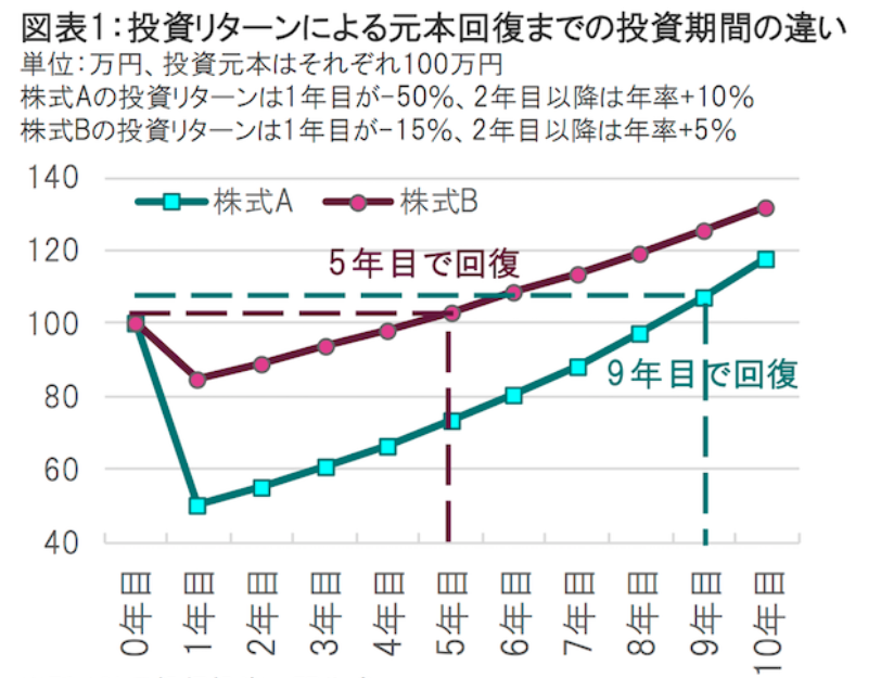 元本に戻すためだけに、倍の+100%のリターンが必要になるんですね。