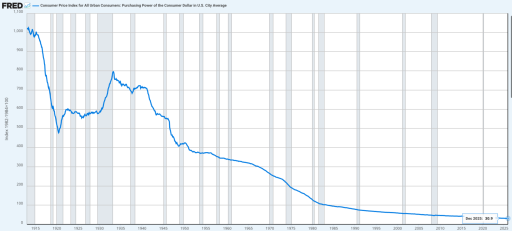 100年前の1ドルの価値は、今では3セントの価値しかありません。